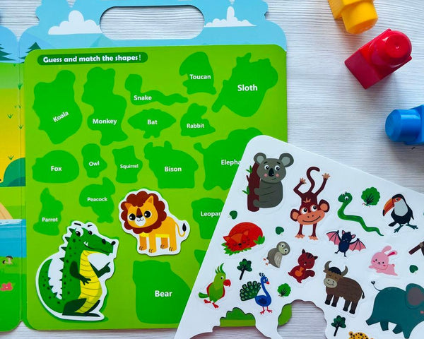 - 21 gumolepek a rozevíratelné pozadí přírodním zátiším i se stranou, na které se nacházejí stíny zvířátek.
