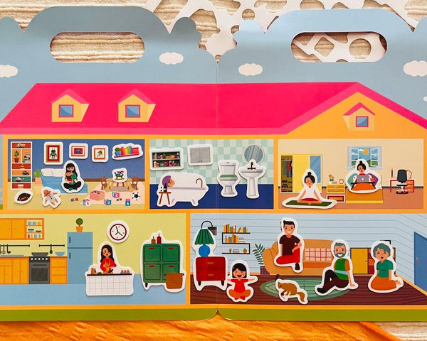 - 32 gumolepek a rozevíratelné pozadí s vyobrazením interiéru domu i se zadním dvorem.