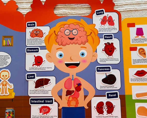 - 44 gumolepek a rozevíratelné pozadí se stíny orgánů a částí lidského těla.