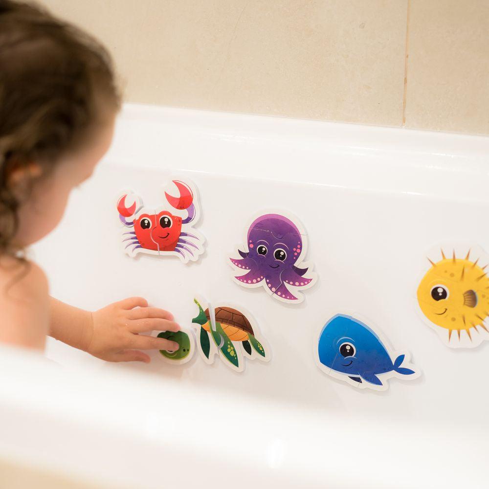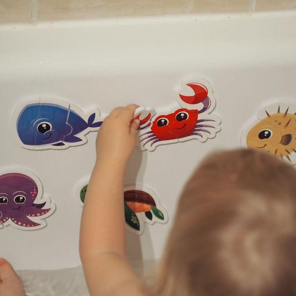 - Poskládejte z pěnových puzzle nálepek oblíbené zvířátka na stěně své vany a zpříjemněte dětem každodenní koupání.