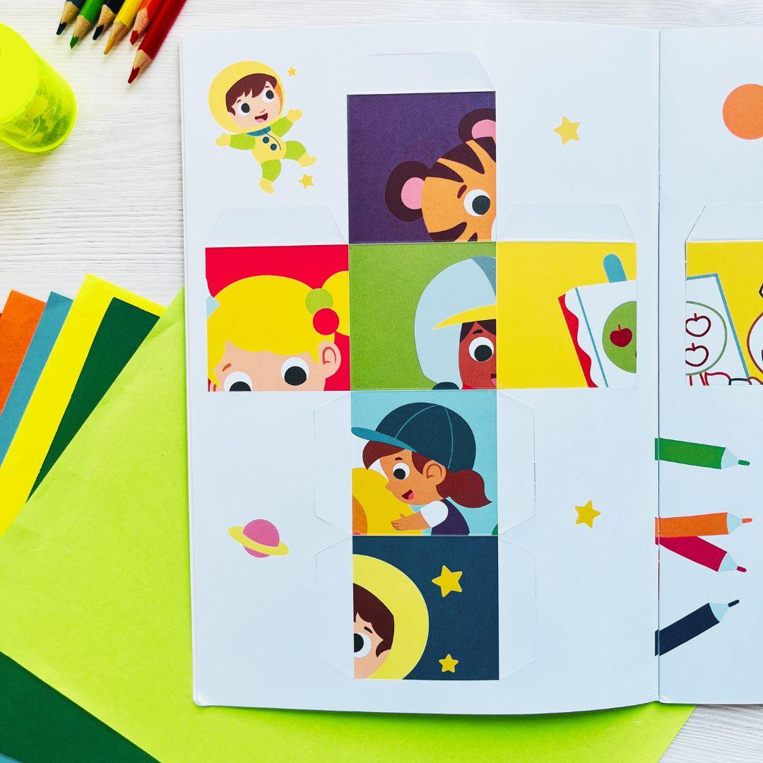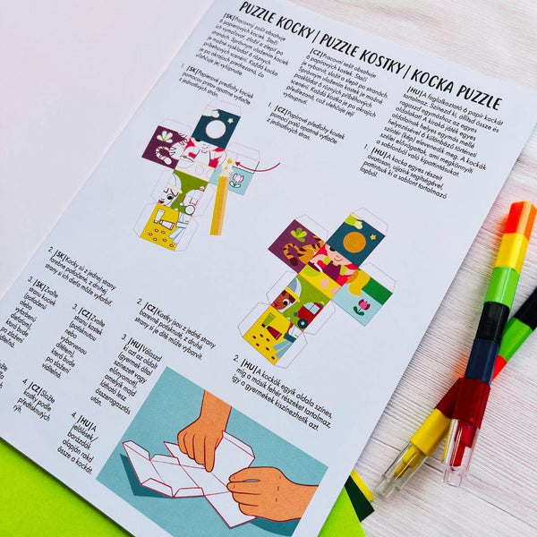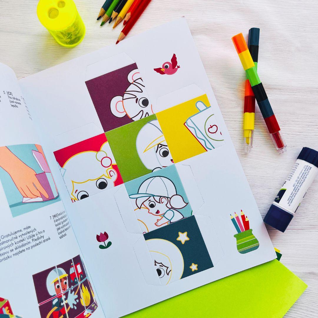 - Pracovní sešit obsahuje 6 rozložených papírových kostek. Stačí je vymalovat, složit a slepit po stranách.