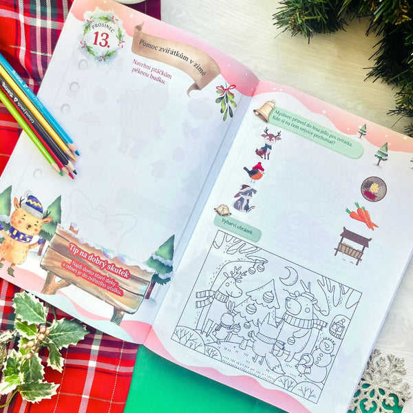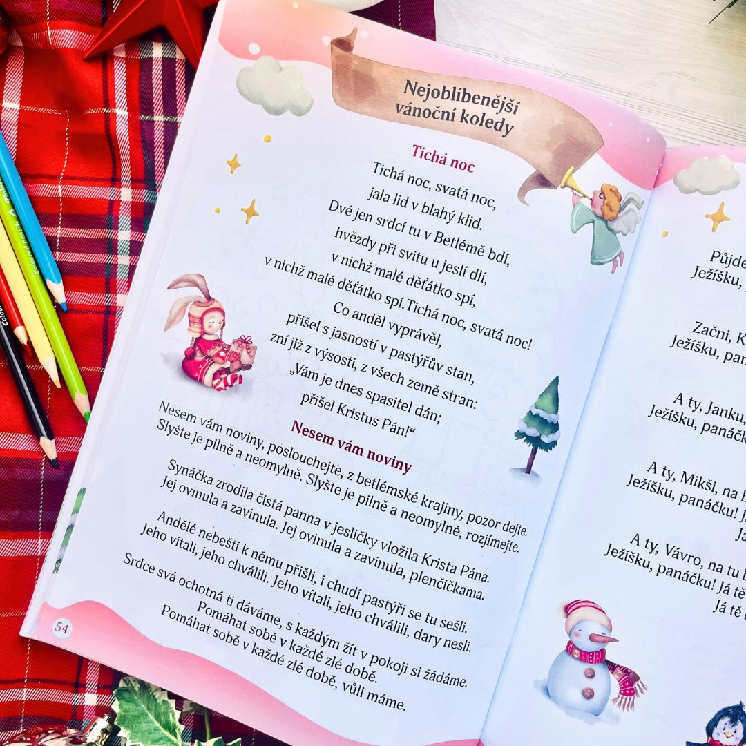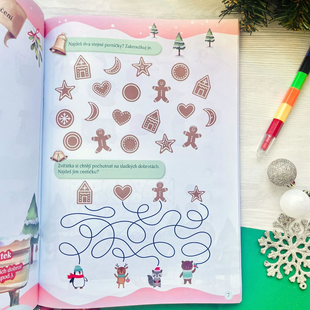 - Obsahuje 56 barevných stránek formátu A4 + přílohy (vánoční pexeso, vystřihovánky, šablona dopisu pro Ježíška, vánoční jmenovky na dárky);