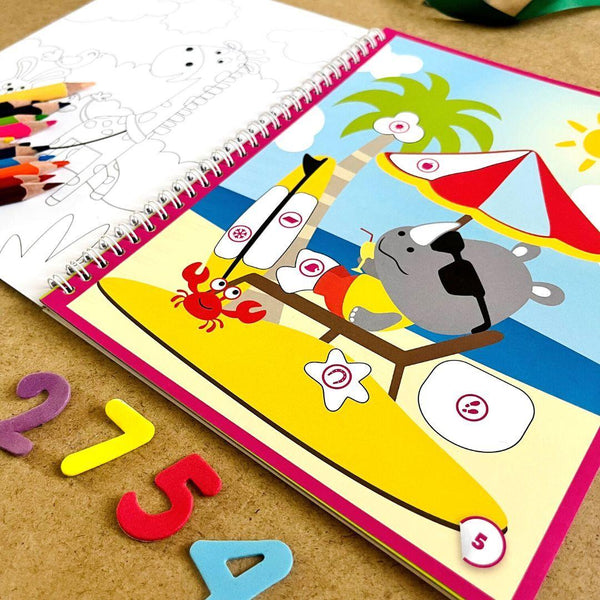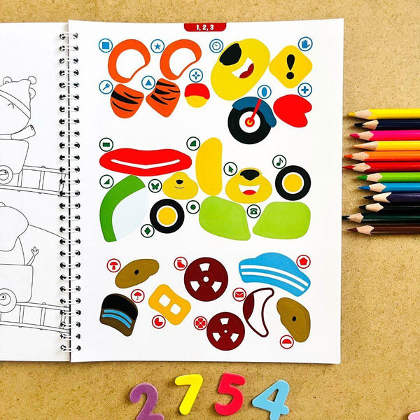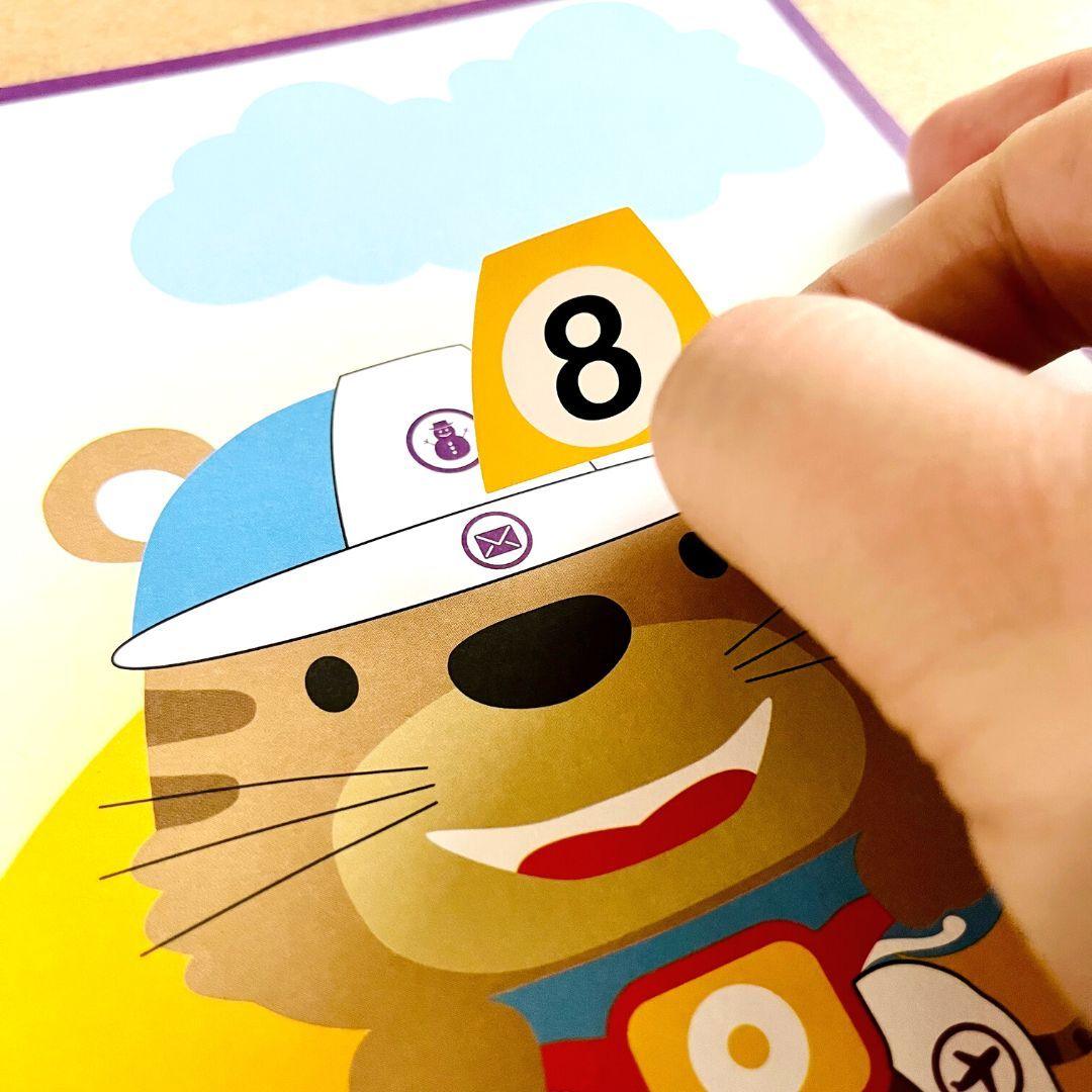 - Úkolem dítěte je přilepit barevné nálepky z archu tak, aby se číslo u nálepky shodovalo s číslem na obrázku.