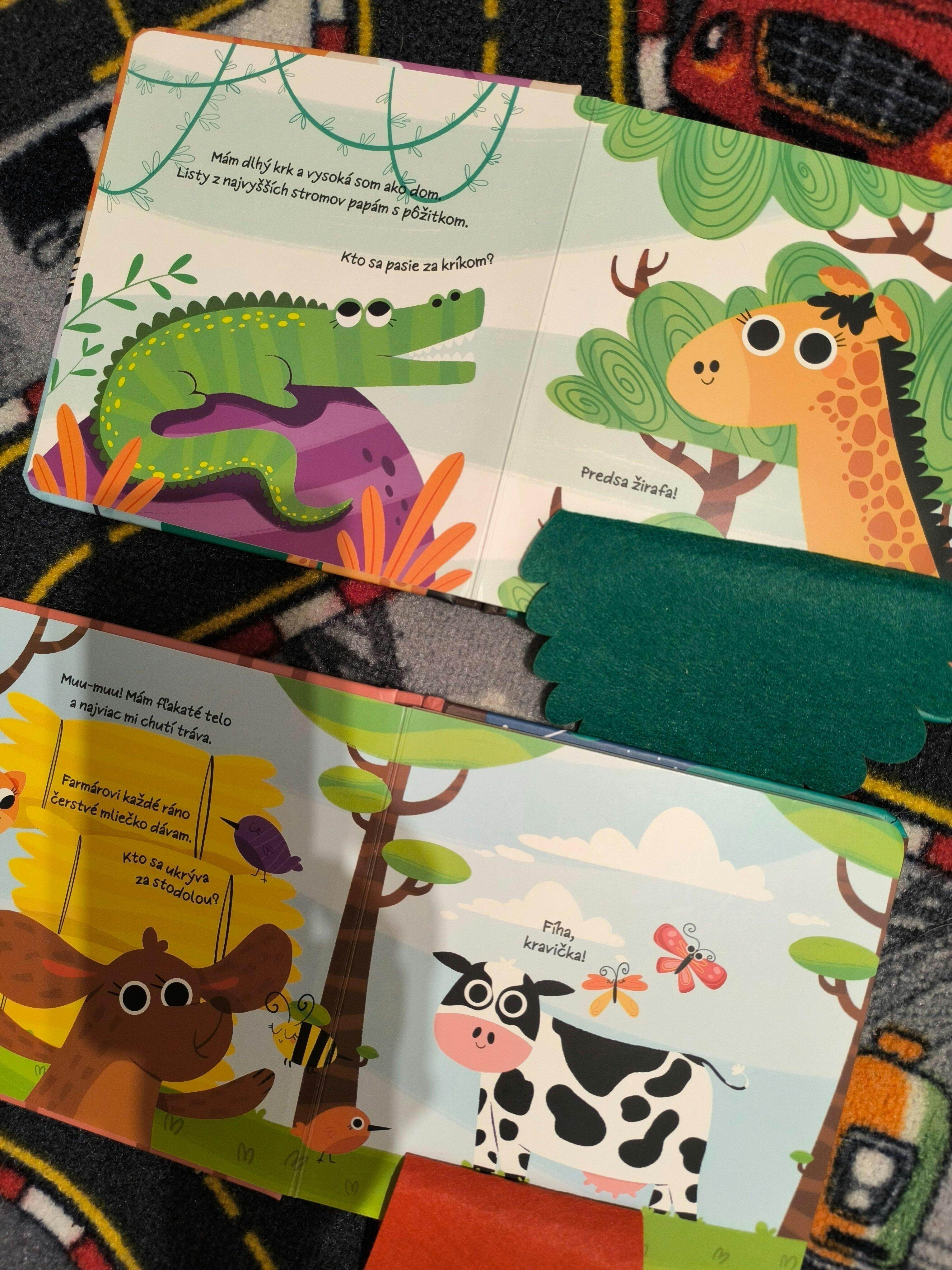 Veľmi krásne spracované knižky máme obe. Oceňujem Slovenský jazyk, krásne farby, môj synček na striedačku nosí raz jednu raz druhú aby sme si spolu čítali a on mohol odkryť zvieratko a má z toho obrovskú radosť. Knižky sú z pevného materiálu nedajú sa rýchlo zničiť čo tiež veľmi oceňujem. Keby je ešte o autách alebo podmorskom svete tak objednám. Určite na 100% odporúčam!