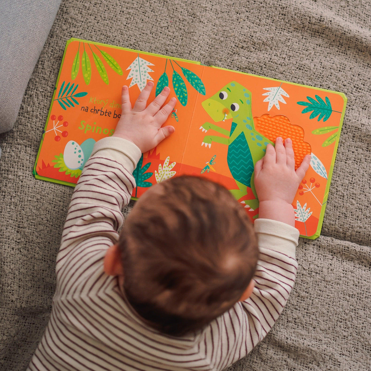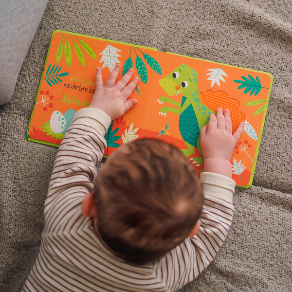 Knížka poznej dotykem - život dinosaurů je ideálním pomůcníkem pro malé děti, které se chtějí vydat na toulky pravěkem.